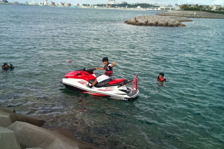 一通りウェイクボードを楽しんだあとは、ジェットスキーのスピード体感講座(笑)