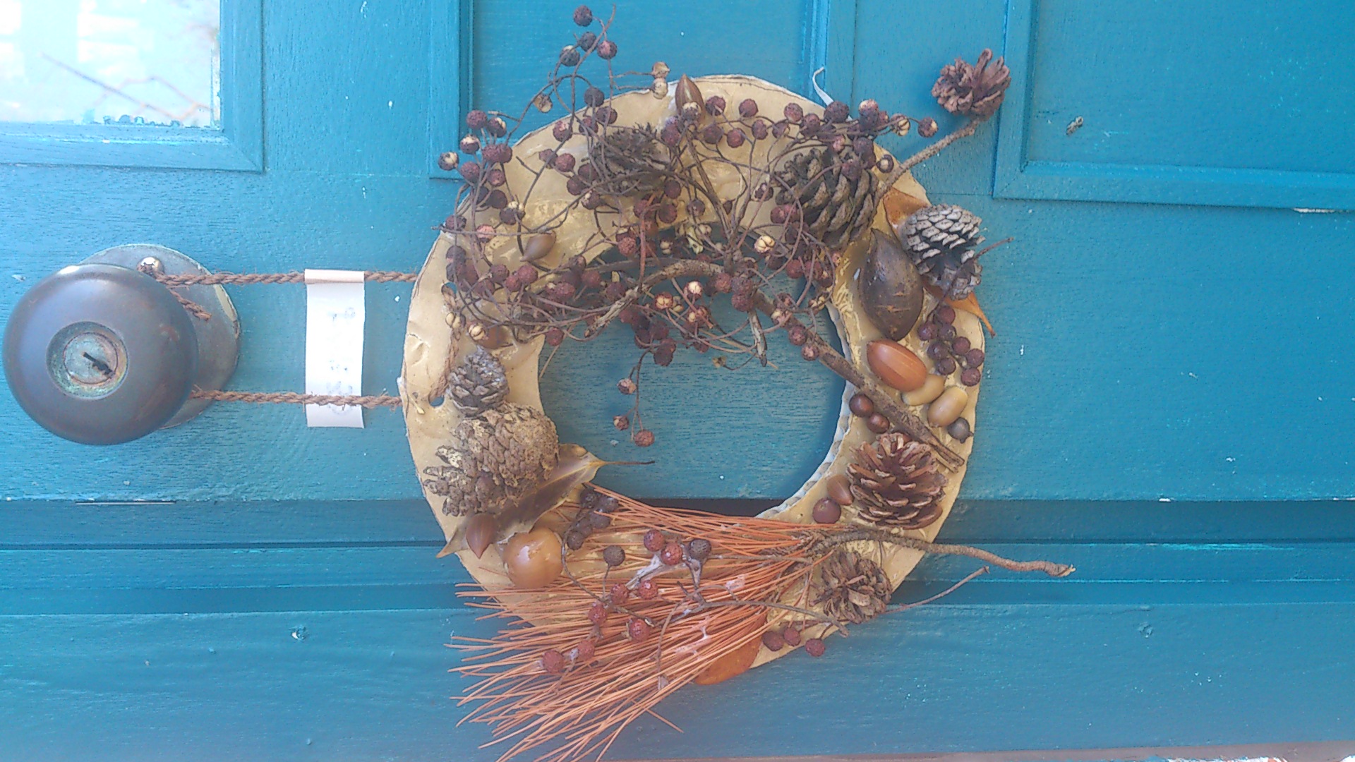 なので、今年は、チビと一緒に公園で拾ったもので作った、リースを飾ってみました!